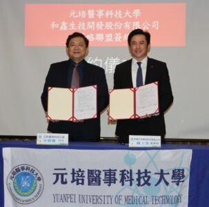 On November 7, NanoRay Biotech and Yuanpei University of Medical Technology signed a memorandum of understanding (MOU), with NanoRay CEO Maick Su and Yuanpei President Ching-Kang Wang officiating the partnership. The collaboration focuses on student internships, faculty research projects, and exchange programs, aiming to foster excellence in radiation and X-ray technology.