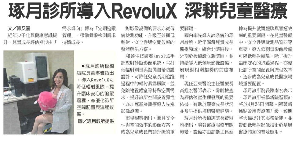 Lelune Clinic, one of the first in Taiwan to adopt RevoluX, has been actively advancing pediatric growth medicine in recent years. Following its Taipei location, the clinic has recently established a new branch in Banqiao and continues to introduce low-dose RevoluX systems, providing a safe and convenient environment for pediatric bone age assessment.