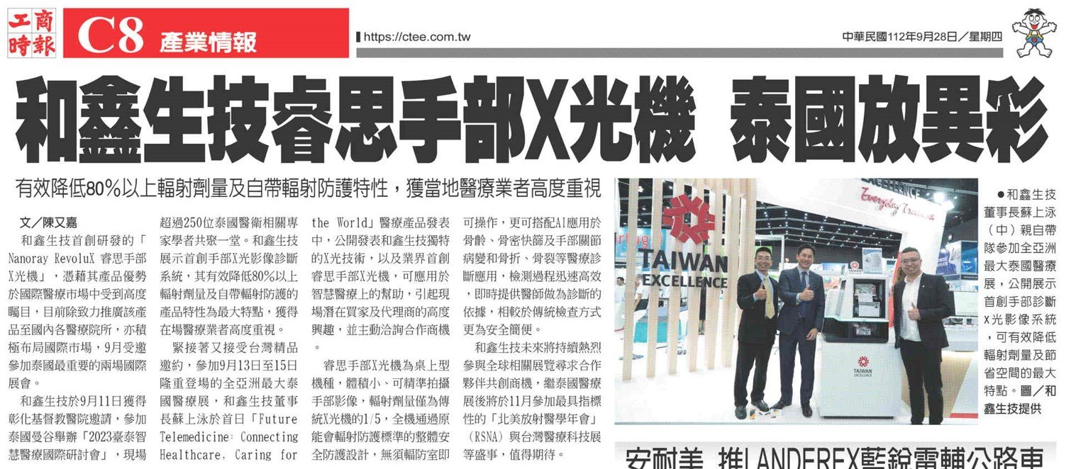 NanoRay Biotech’s RevoluX hand X-ray system, a world-first innovation, has attracted significant attention in the international medical market. While actively promoting the product across Taiwan, NanoRay is expanding globally and was invited to participate in two major medical exhibitions in Thailand in September, drawing strong interest from potential buyers and distributors.